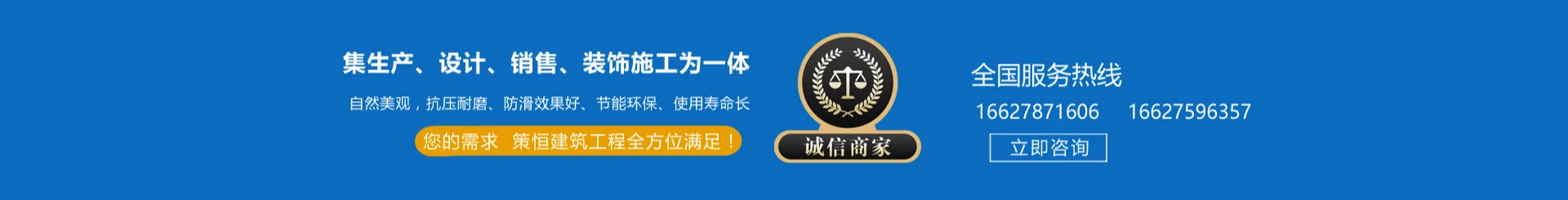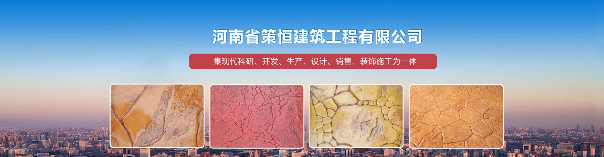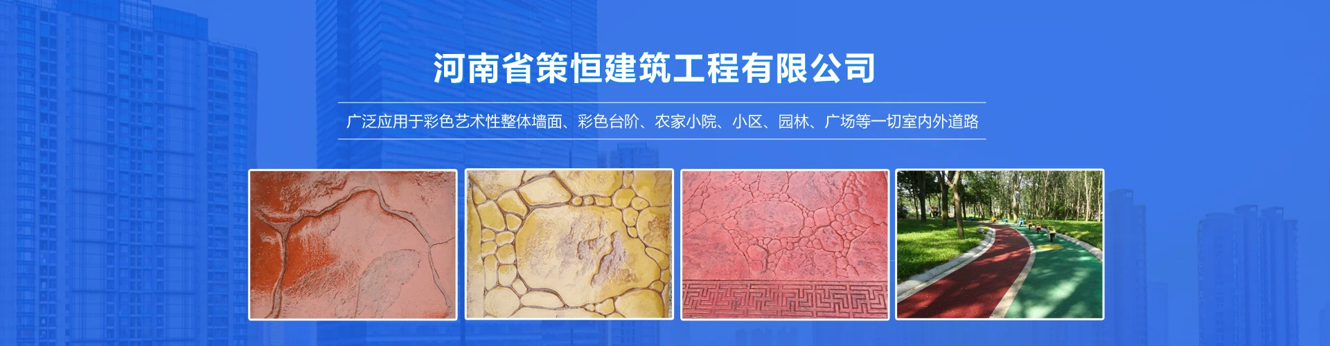河南省策恒建筑工程有限公司的系列彩色地坪具有施工快捷,自然美观,抗压耐磨、防滑效果好、节能环保、使用寿命长等优点,被广泛应用于彩色艺术性整体墙面、彩色台阶、农家小院、小区、园林、广场等一切室内外道路。策恒彩色系列地坪已得到许多建筑设计学院和建筑施工单位的推荐和优先选用。河南省策恒建筑工程有限公司是有着悠久历史集现代科研、开发、生产、设计、销售、装饰施工为一体,多元化、跨地域的大型公司,我公司所有的科研、生产、设计、施工、管理人员都经过严格专业系统的培训。公司以人为本、科技创新、品质服务、诚信天下的经营理念,为您做好专业优质高效的服务。
